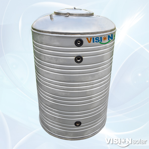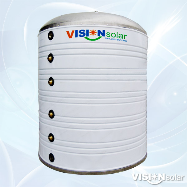 INTRODUCTIONVISION large-scale commercial solar water heating system normally incorporate a big atmospheric tank that stores the solar heated water, the stored hot water can be used for shower use and room and pool heating.