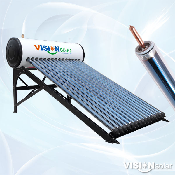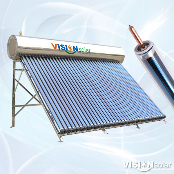 SYSTEM DESCRIPTION VISION VHS series solar water heater incorporates a number of high efficiency heat pipe tubes, high pressure hot water tank, supporting bracket and accessories.The pressurized water tank has a number of top-closed sleeves
