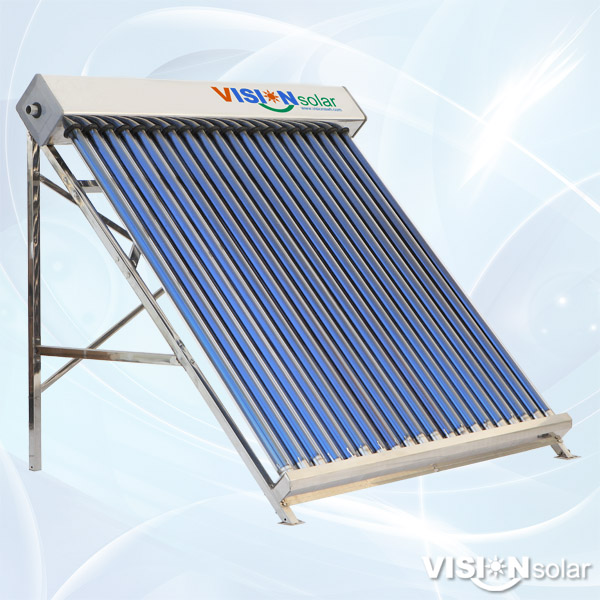 DESCRIPTION VISION VNC series non-pressurized solar collector is mostly designed for an open loop system, in which the water is heated directly inside tubes and stored in a separated tank;The solar collectors are usually connected together